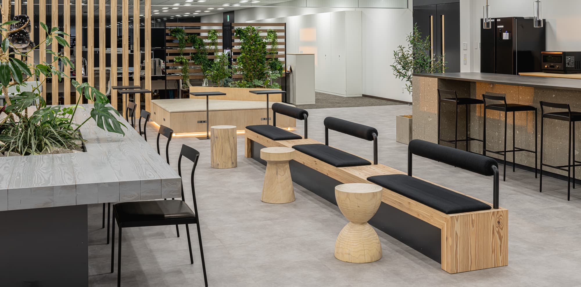 既製品では対応しきれない部分は素材やサイズから設計するオーダーメイド家具や造作什器をご提案。自社大工・専任大工の技術を活かし、機能性と心地よさを兼ね備えた空間を実現します。