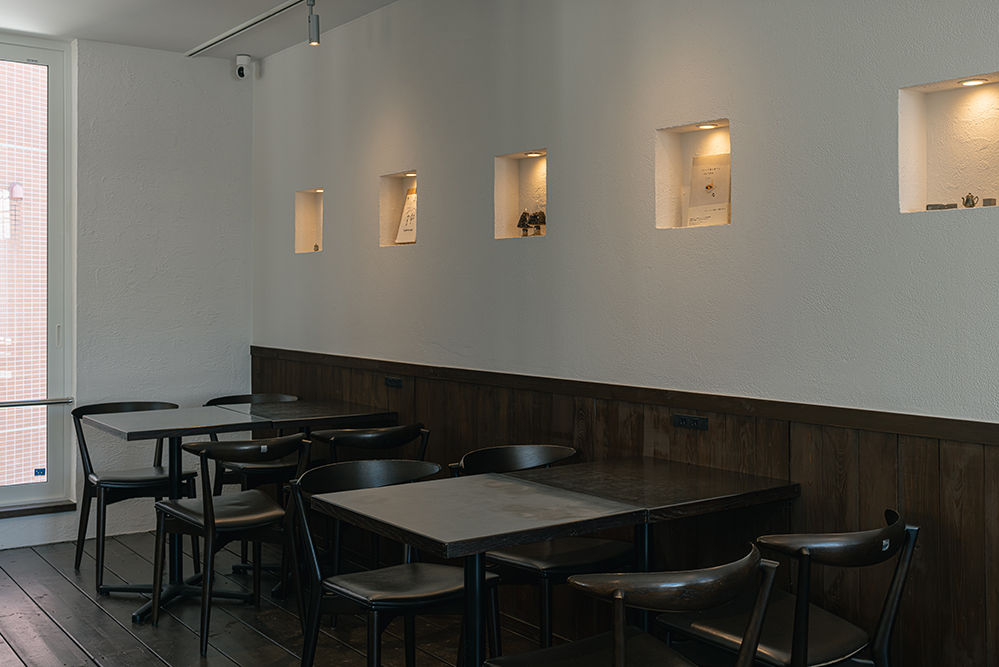 グループ会社の三五工務店でご自宅を設計・施工したご縁から、菓子製造・販売を行う喫茶店の計画をご依頼いただき、ご自宅同様に札幌軟石を主役として、その魅力を発信する店舗となるよう自然素材をふんだんに用いたデザインをご提案しました。