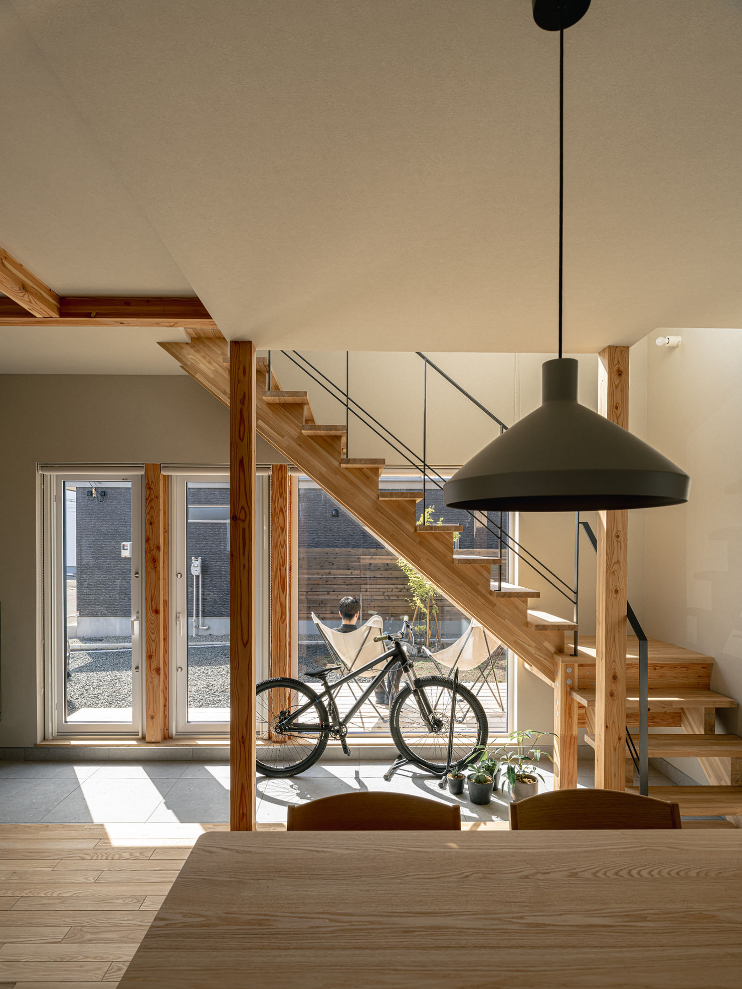 アウトドアの趣味を存分に楽しめる間取りが特徴で、1階はLDKと土間のみというシンプルな構成。