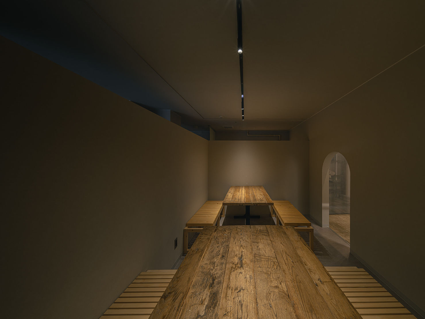 テーブル席のスペースは、少し低めのアーチ状入口によって特別感を演出。
