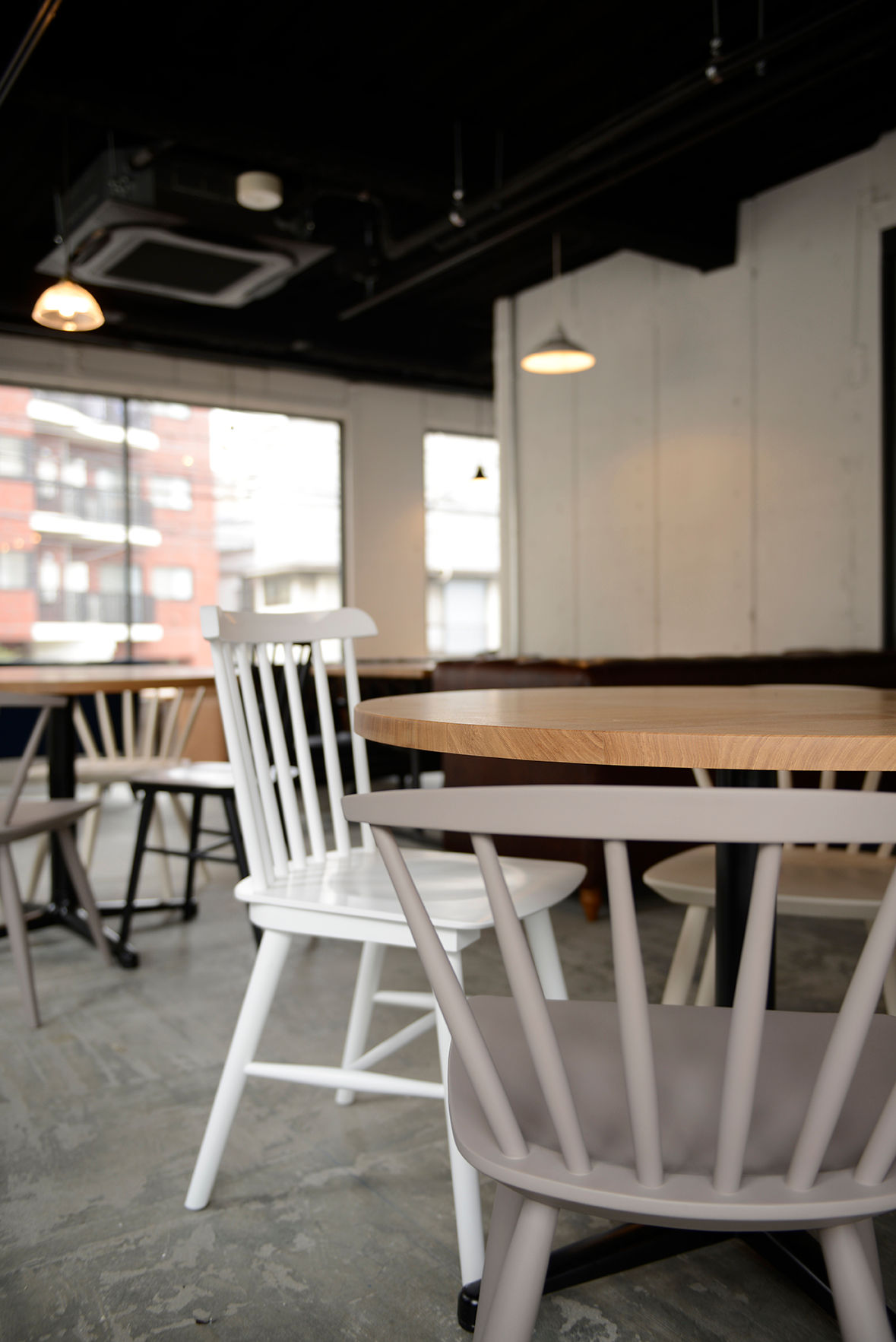 ドッグカフェの造作テーブルや椅子。セレクトから製作の担当。