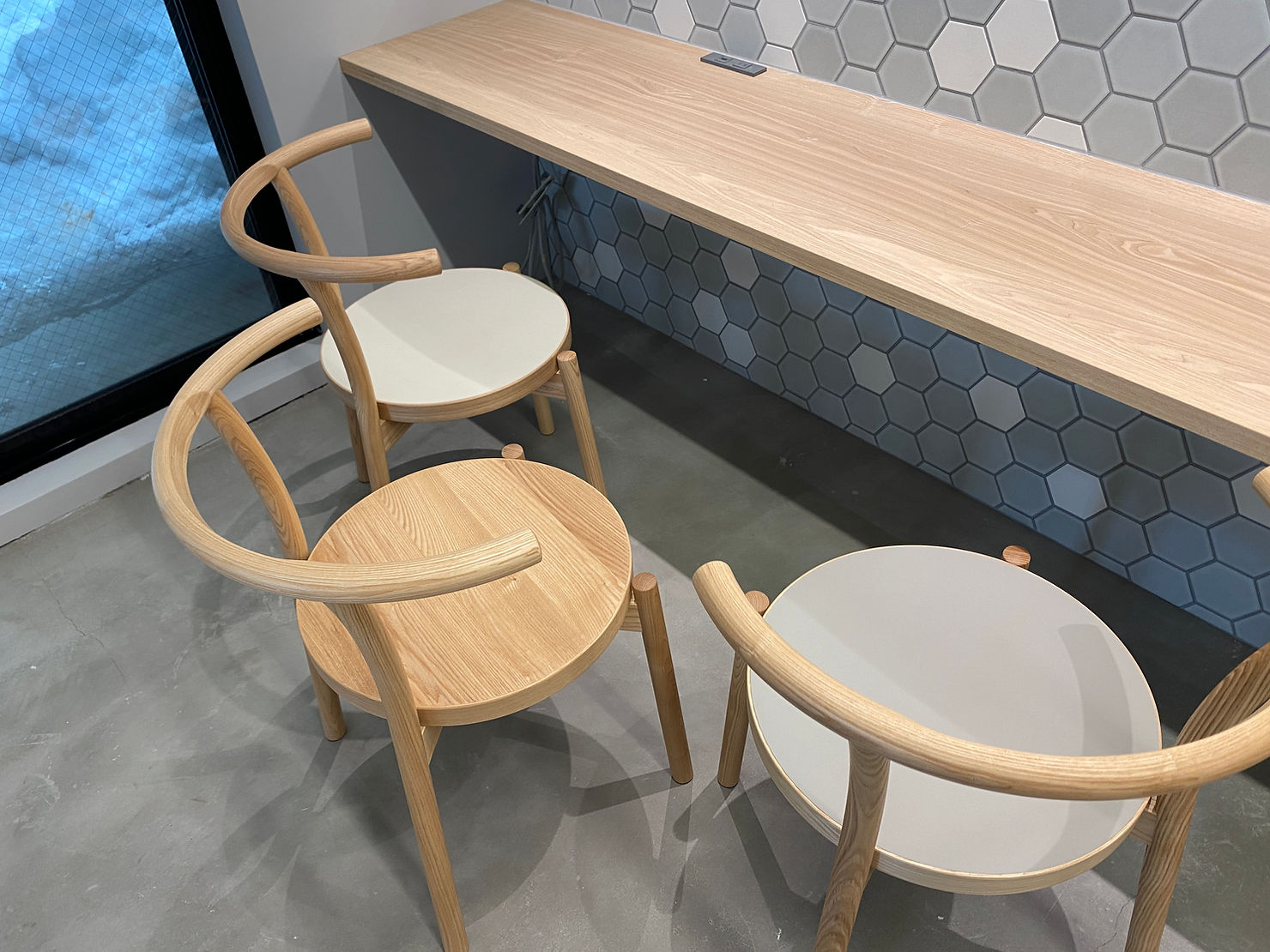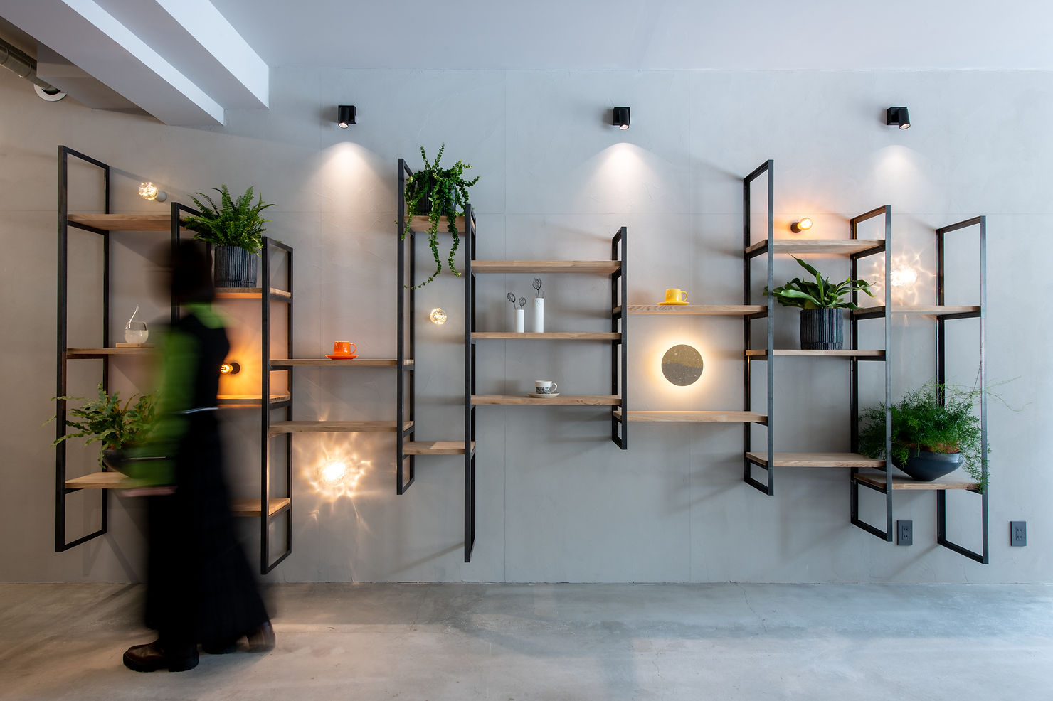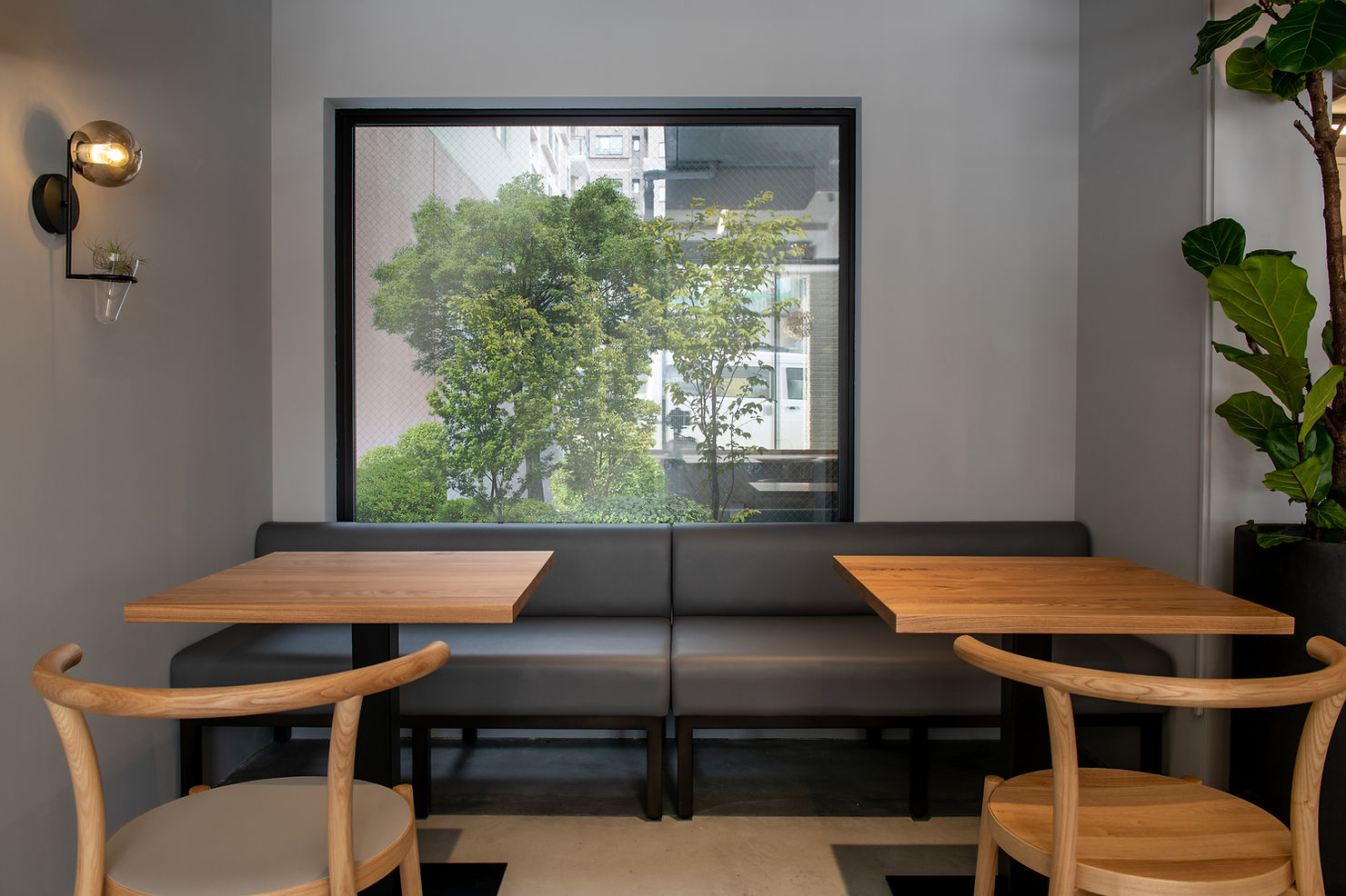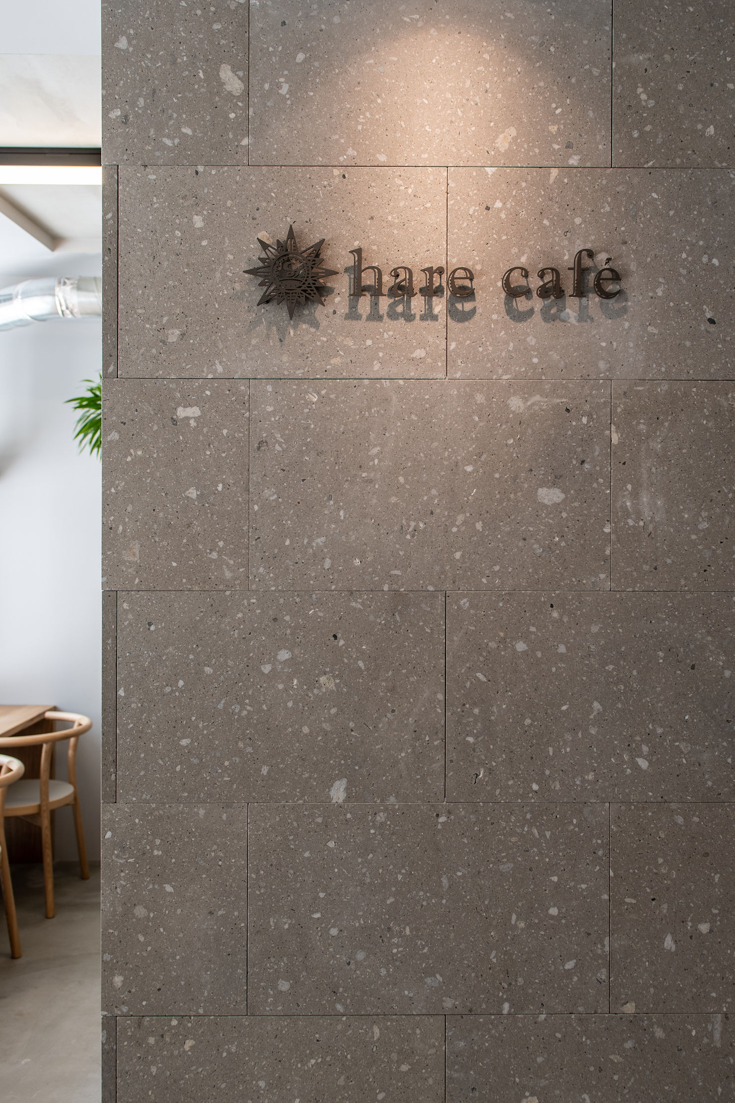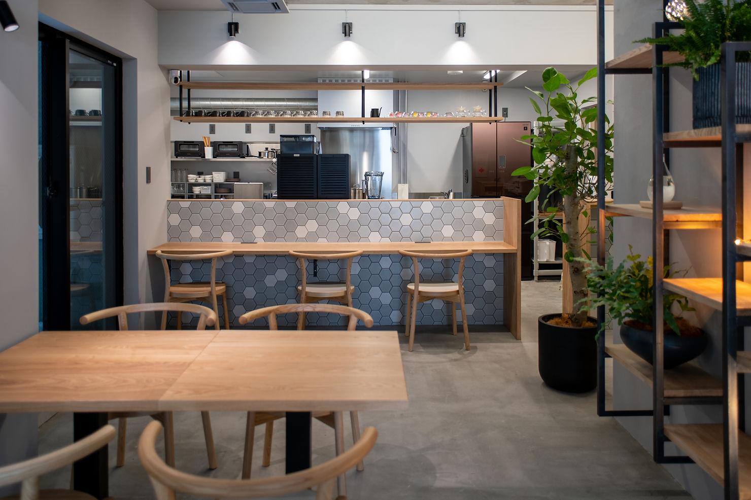 お母様とお嬢様、親子で営むcaféを作りたいとご依頼をいただきました。 私たちが日々大切にしている自然素材を多く内装に取り入れました。 店内に入り正面に見える柱は札幌軟石で仕上げ、 テーブルやカウンターの天板はタモの無垢材で作りました。 黒皮鉄フレームの造作棚は、ディスプレイされた観葉植物・照明と融合し、とても存在感を放っています。 また、座り心地の良い椅子にしたいというオーナー様のこだわりで、CONDE HOUSEの椅子を採用しております。 とても居心地の良い素敵な空間になりました。