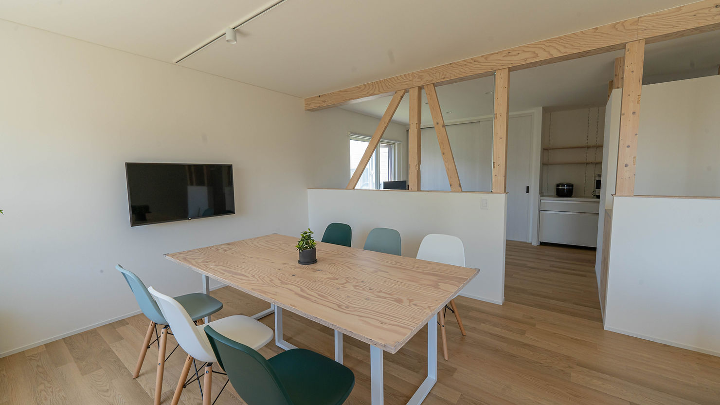 また、ミーティングスペースとダイニングスペースには家具も入れさせていただきました。