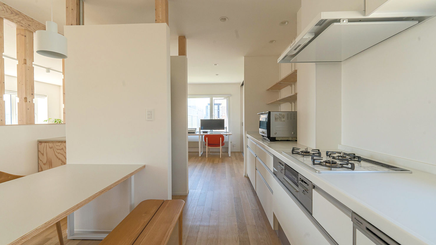 「自宅をオフィスとしても使えるようにしたい!」とのご要望をいただき、築20年の木造2階建ての1階部分をフルリノベーションさせていただきました。
